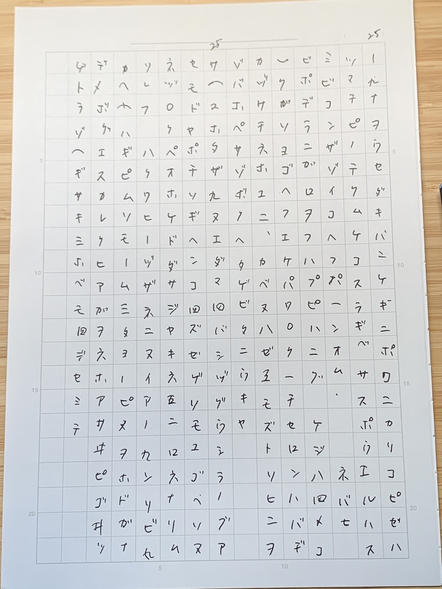方眼ノートは中央で綴じ部に沿って半分に裁断し、1ページずつバラバラにして使用しました。