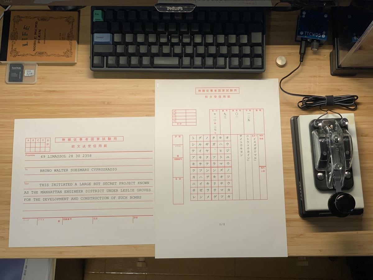 受信の試験に関しては、和文はこんなものかなと言う印象ですが、欧文暗語に関してはこんなにミスをしたかな...という感想です。